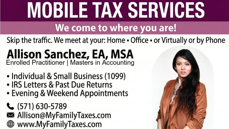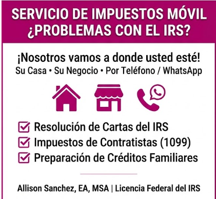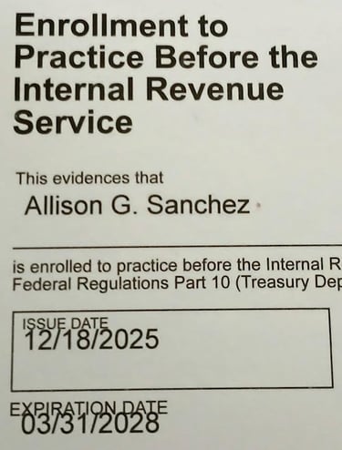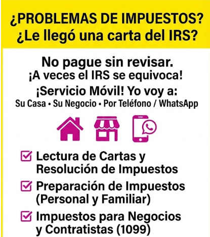 Received an IRS letter? As an Enrolled Agent (EA), I provide professional representation and defense." ¿Recibió una carta del IRS? Como Agente Registrada (EA), brindo representación y defensa profesional.